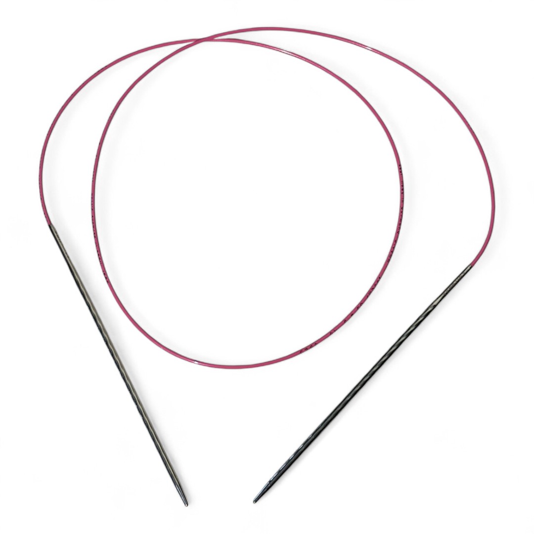 Além da ergonomia, a agulha conta com um cabo rosa extremamente flexível e resistente, característica registrada da linha Unicorn, que evita torções indesejadas e facilita a técnica do Laço Mágico (Magic Loop). É a união perfeita entre elegância, conforto e a renomada engenharia alemã.