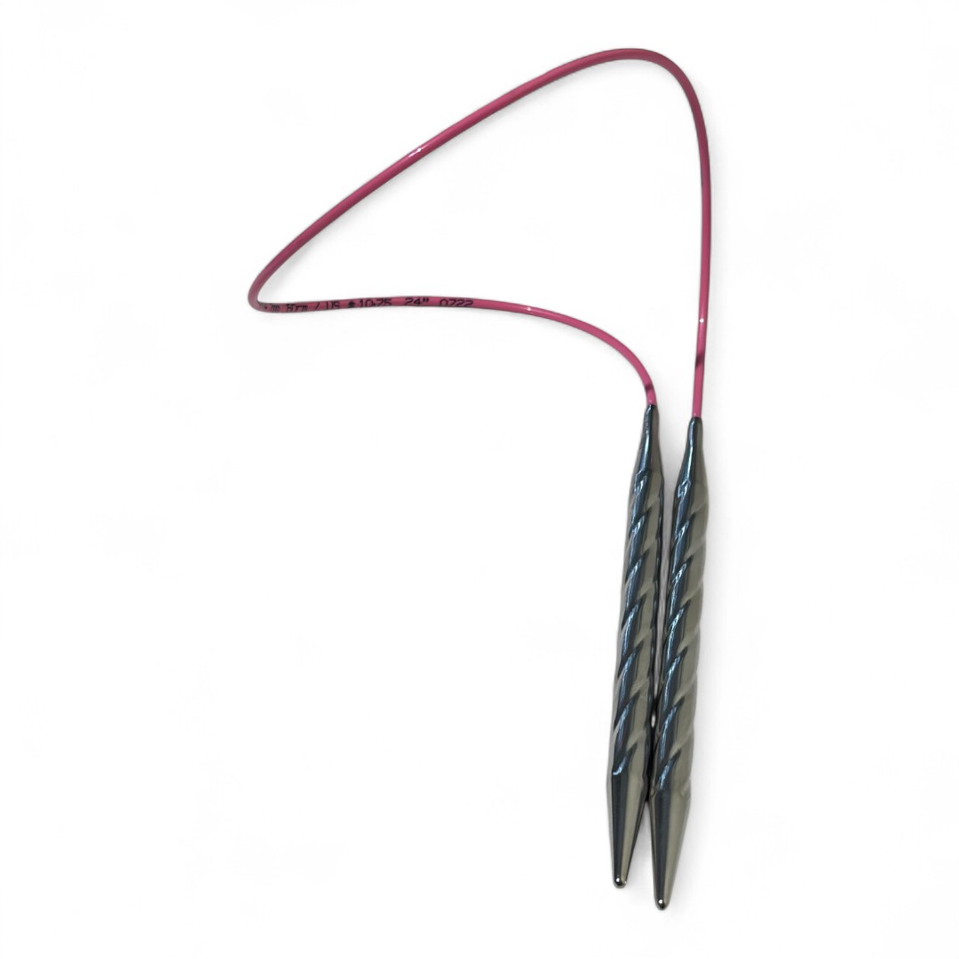 Sua estrutura metálica possui uma textura espiral exclusiva que, além de conferir um visual elegante, proporciona uma leve massagem nas mãos enquanto você tricota, reduzindo a fadiga em longos períodos de uso. O cabo rosa é extremamente flexível e resistente, garantindo que a transição dos pontos seja suave e sem enroscos. É a ferramenta ideal para quem busca precisão, durabilidade e ergonomia no artesanato têxtil.