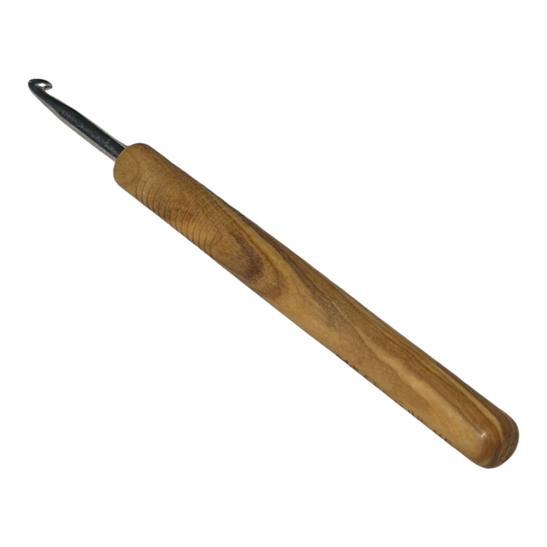 Feita em madeira de oliveira nobre, cada agulha possui veios únicos, tornando-a uma peça exclusiva. A superfície é tratada para um deslizamento perfeito da linha, enquanto a madeira proporciona uma sensação tátil quente e confortável, ideal para longas sessões de crochê sem fadiga.