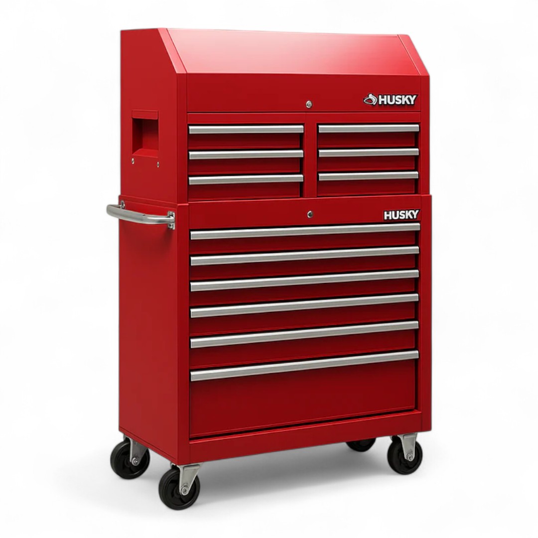 Com uma largura de 36 polegadas e acabamento em vermelho brilhante industrial, ele não apenas protege seu investimento em ferramentas, mas também adiciona um visual profissional à sua oficina ou garagem. A estrutura em aço de alta resistência garante durabilidade, enquanto o sistema de 12 gavetas permite a separação meticulosa de itens, desde pequenas peças até ferramentas elétricas maiores.