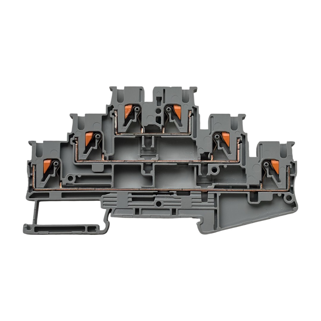 O grande diferencial deste modelo é a tecnologia de conexão mola (Spring Clamp). Ela permite uma instalação até 50% mais rápida em comparação com os bornes a parafuso tradicionais, eliminando a necessidade de reapertos periódicos. A conexão é antivibração, mantendo o contato elétrico perfeito mesmo em ambientes industriais exigentes.