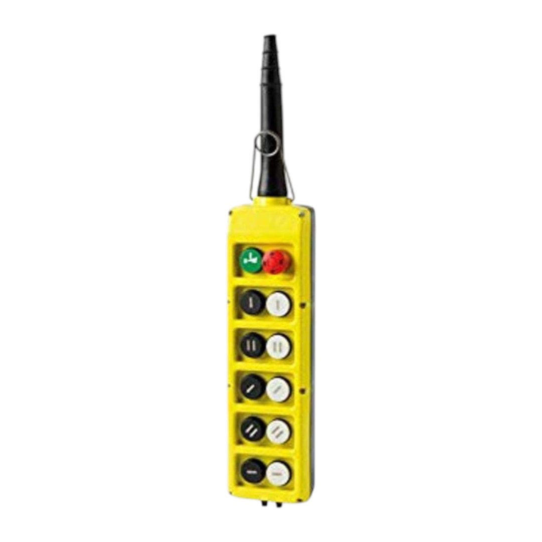 A Estação Pendente PLB12/E para Giovenzana é a solução completa e montada para o controle de guindastes suspensos e aplicações industriais de alta complexidade. Com configuração de 12 botões em fila dupla, este controlador oferece uma interface intuitiva e robusta para operações que exigem múltiplos comandos simultâneos.