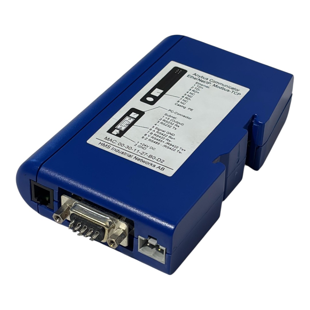 Produto a pronta entrega: Gateway industrial da HMS Networks, modelo AB7007-C — Anybus Communicator. Permite conectar dispositivos seriais (RS-232/422/485) a redes EtherNet/IP ou Modbus-TCP, facilitando a modernização de instalações industriais sem troca de equipamentos. Ideal para integrar sensores, inversores, HMIs, controladores e outros equipamentos antigos a PLC ou sistemas de automação modernos. Fácil configuração via software Anybus Configuration Manager — sem necessidade de programação serial. Alimentação 24 V DC, montagem DIN-rail, operação estável e confiável.