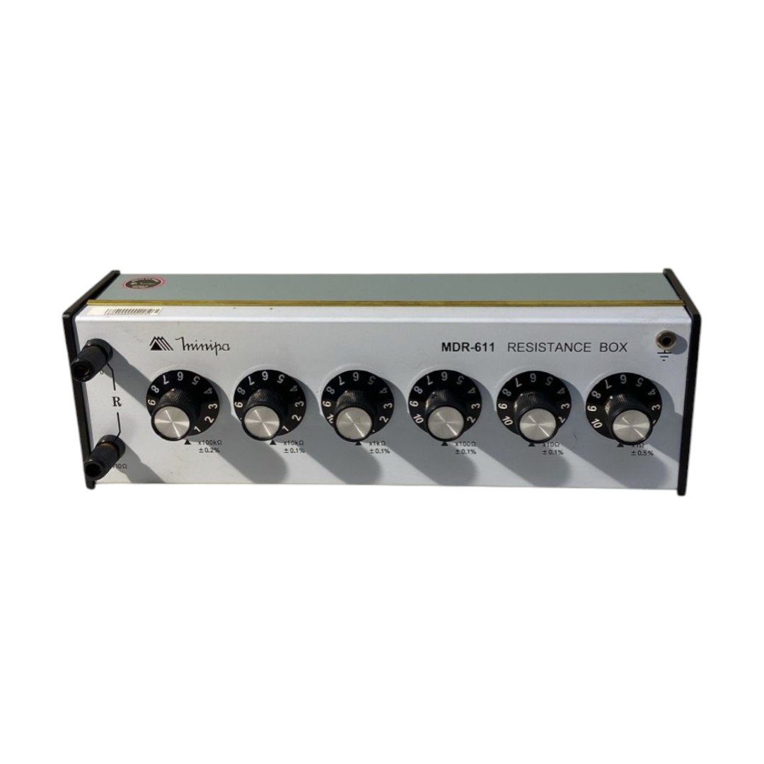 Década resistiva Minipa MDR-611, desenvolvida para simulação e ajuste preciso de valores de resistência em testes e calibrações elétricas.