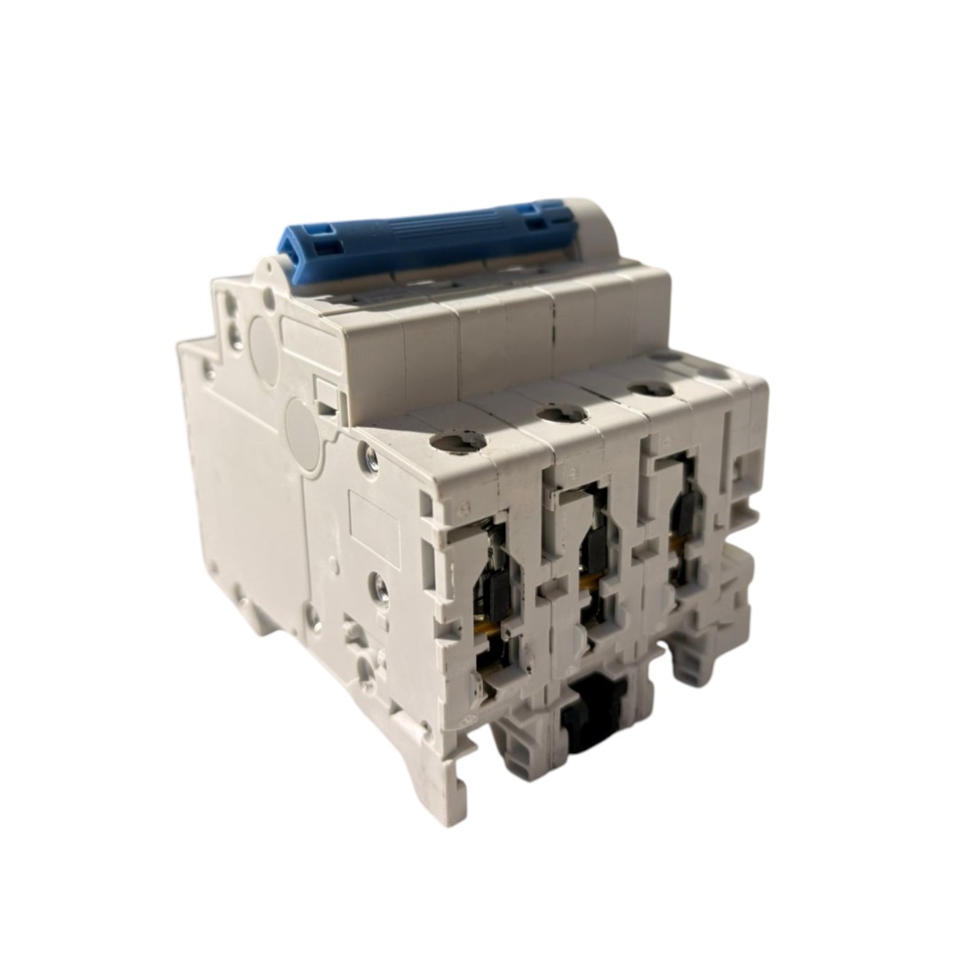 Com 3 polos e corrente nominal de 6A, este disjuntor miniatura oferece proteção confiável para equipamentos e sistemas de automação, sendo amplamente utilizado em painéis elétricos industriais e quadros de distribuição.