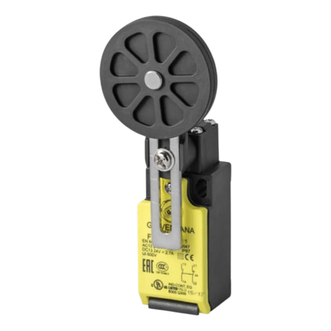 Fim de curso alavanca giratória regulável c/ roldana de ø50 de borracha