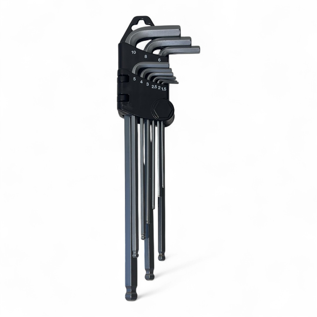 Este Jogo de Chaves Allen Longas é a solução definitiva para trabalhos que exigem alcance e torque precisos. Com um conjunto versátil de 9 peças, cobrindo de 1.5mm a 10mm, você estará preparado para qualquer montagem, manutenção ou reparo.