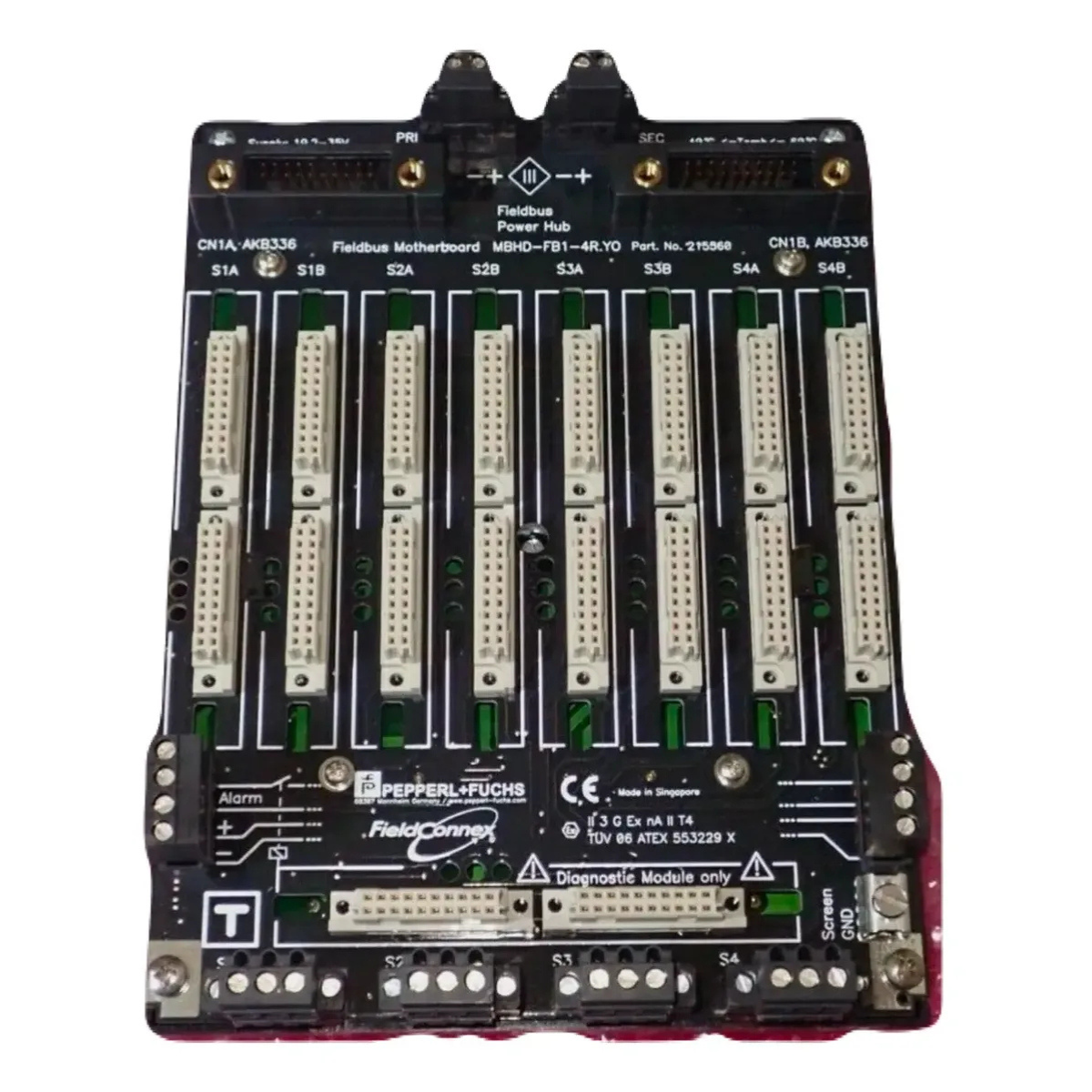 Módulo Universal Fieldbus Power Hub Pepperl+Fuchs MBHD-FB1-4R, desenvolvido para alimentação e distribuição de energia em redes Fieldbus industriais.