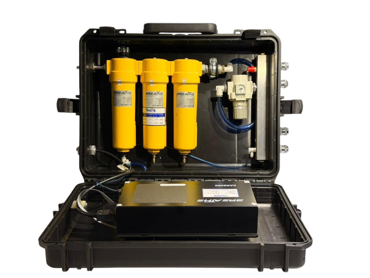 O sistema XPAR1000 atua como uma barreira robusta, filtrando contaminantes provenientes do compressor, como partículas sólidas, água e névoa de óleo. É a solução definitiva para garantir que o ar que chega à máscara do operador esteja limpo e seguro para respiração.