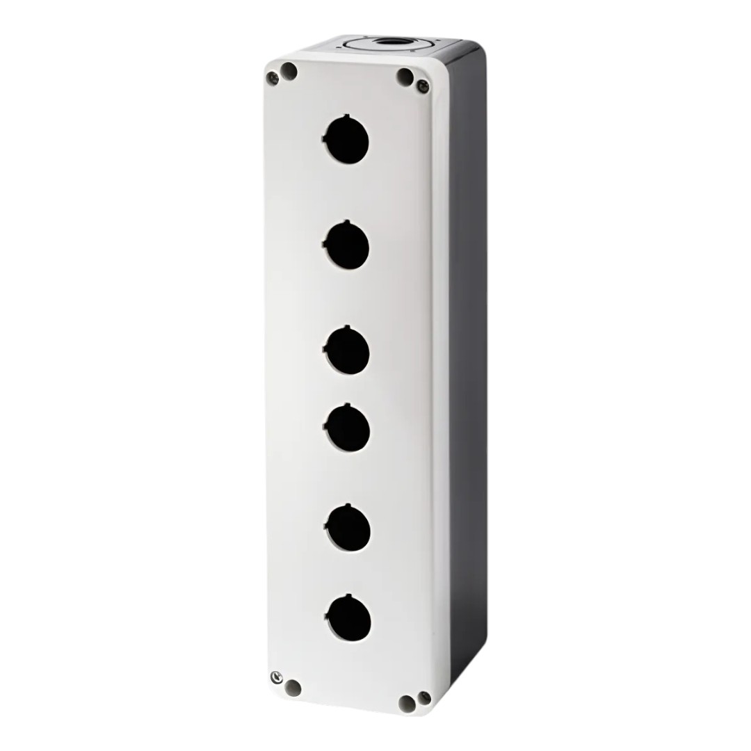 A Caixa para Botões Giovenzana PQ06KGN é a solução definitiva para quem busca robustez e confiabilidade na instalação de sistemas de comando e controle industrial. Projetada pela renomada marca italiana Giovenzana, esta botoeira da linha Pegasus oferece seis furos para montagem de componentes de 22mm, permitindo centralizar operações complexas em um único invólucro compacto e resistente.