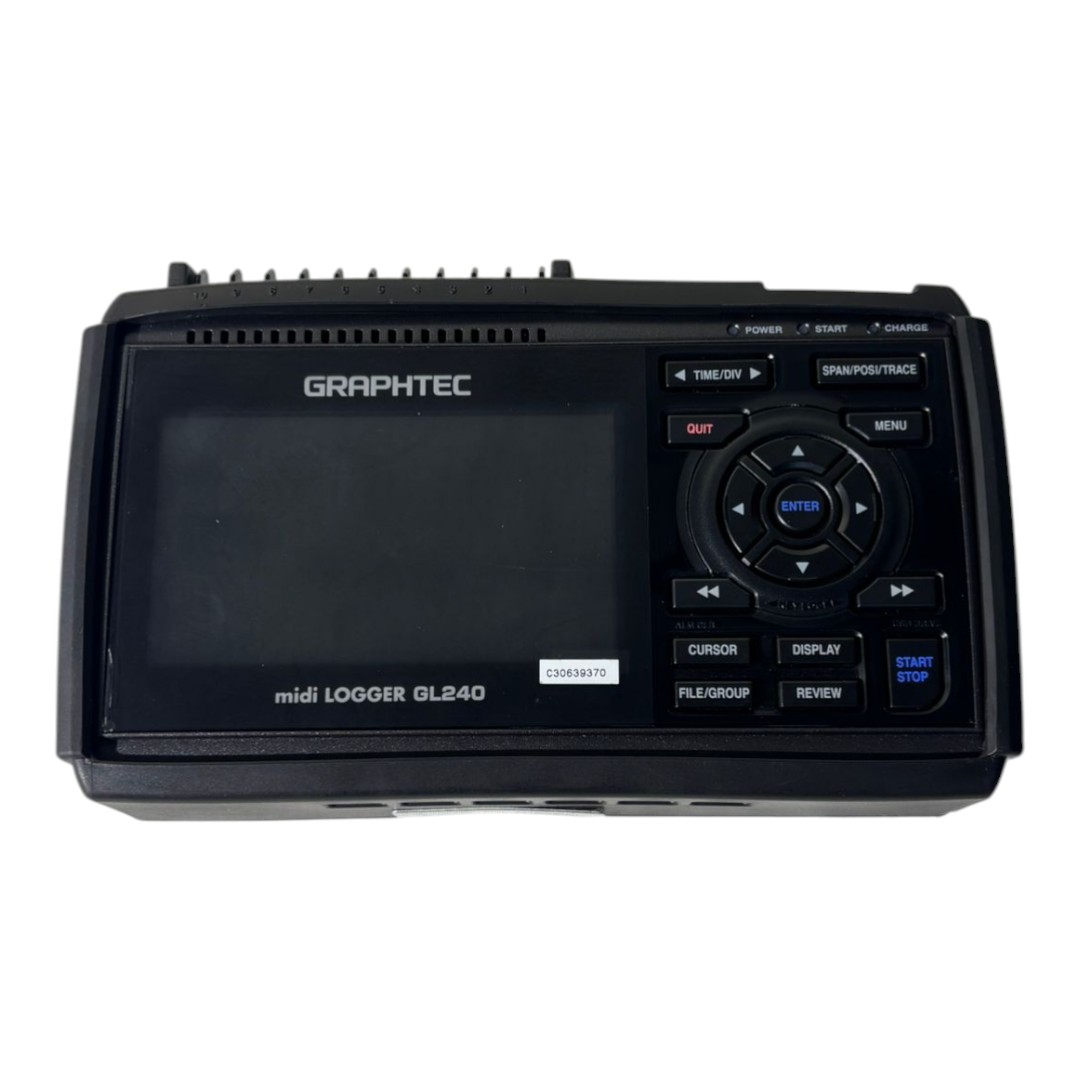Registrador de dados (data logger) GRAPHTEC GL240, desenvolvido para aquisição, monitoramento e registro de múltiplos sinais em aplicações industriais e laboratoriais.