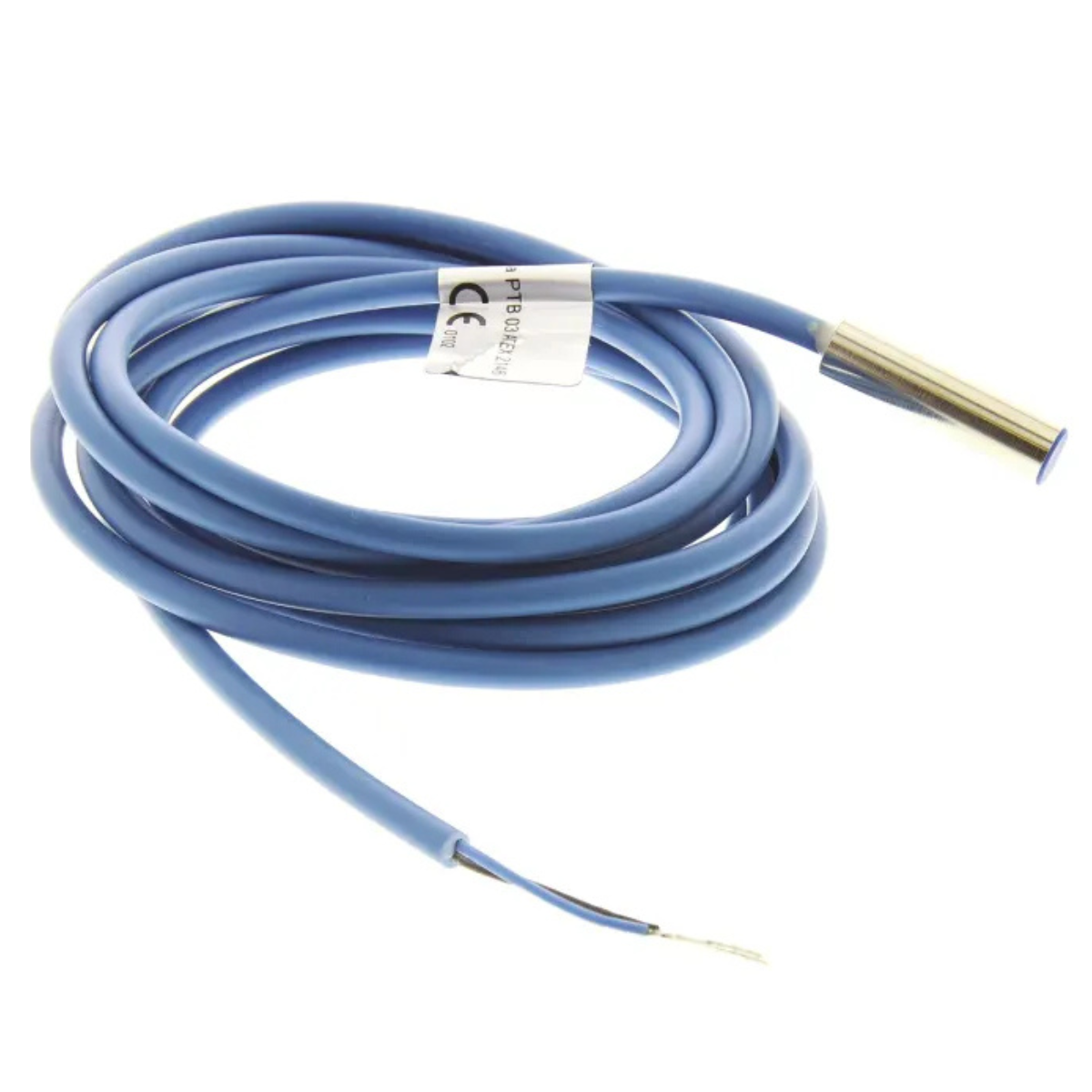 Sensor de temperatura NTC ECSND5100 30V com cabo de 1,5 metros e bulbo em inox 6x30 mm, ideal para medições precisas em aplicações industriais, comerciais e sistemas de refrigeração.