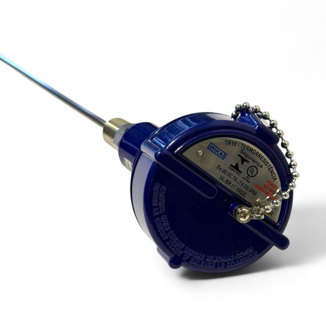 Fabricado sob os rigorosos padrões de qualidade Wika, o modelo TR10 é a escolha ideal para medição em tanques, tubulações, reatores e maquinário. A configuração Pt100 Classe A com 4 fios assegura a mais alta acuracidade, compensando a resistência dos cabos e garantindo que a leitura reflita exatamente a temperatura do processo.