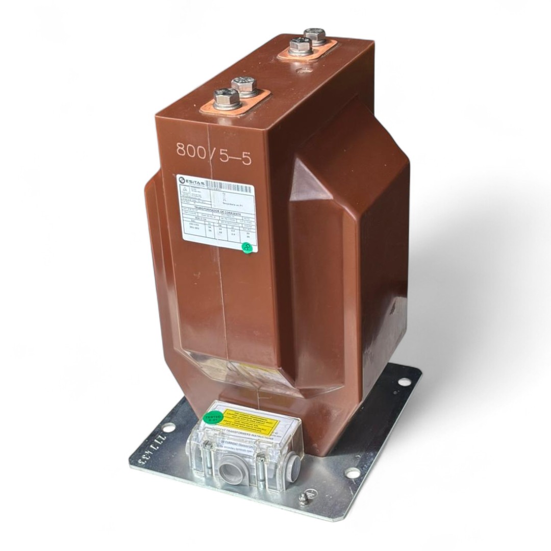 Com relação de transformação dupla de 800/5-5A, este equipamento permite versatilidade, atendendo simultaneamente circuitos de medição e proteção. Sua construção atende rigorosamente às normas internacionais IEC, garantindo confiabilidade em subestações e painéis industriais.
